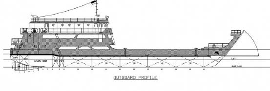 LOA 45m x 9m x 3m draft.