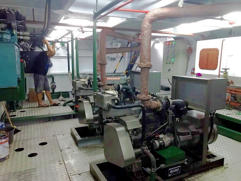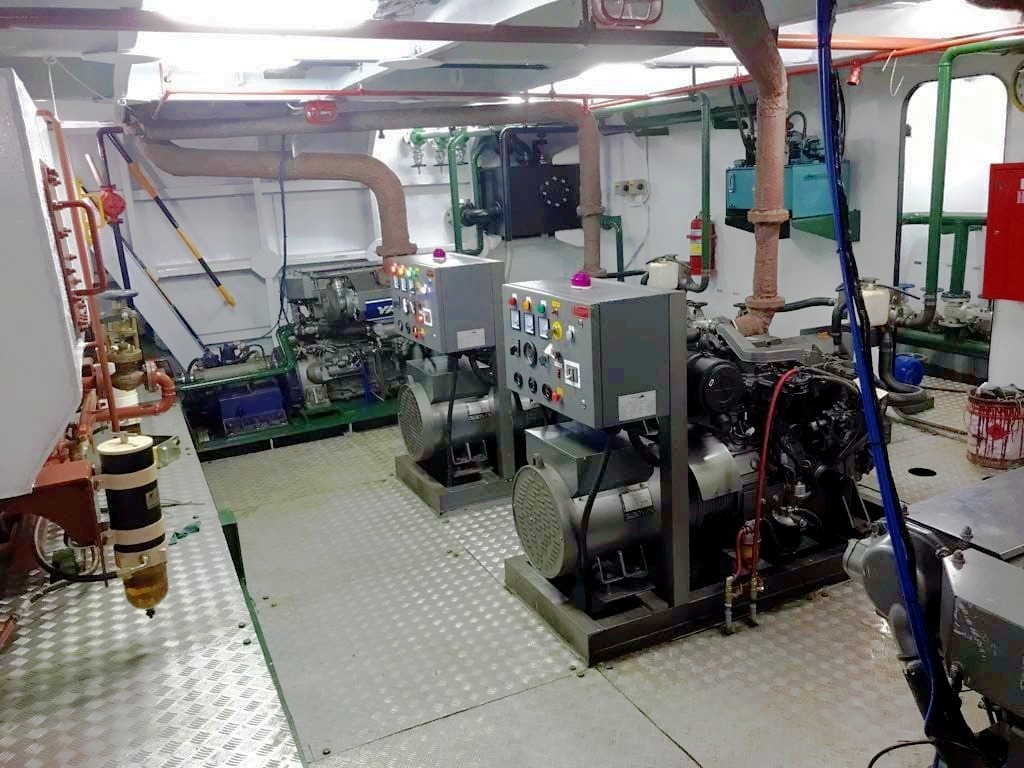 Twin Yanmar 4TNV98-GGe aux engines.